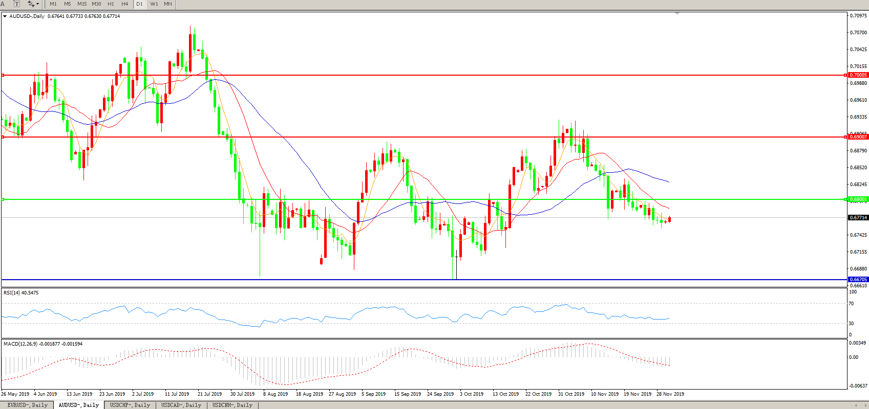 澳洲联储将于下周二(12月3日)公布利率决议,市场预期将按兵不动;在国际贸易局势不确定性以及澳洲经济数据表现欠佳的背景下,外界对澳洲联储将进一步降息的预期不断升温; 澳洲联储主席洛威日前表示,他不预期澳洲将不得不动用量化宽松(QE),但倘若有必要,将会以购买国债形式进行,而且只会在指标隔夜拆款利率已低至0.25%时才实施;他的这番谈话被解读为最低可能降息至0.25%,低于市场预期的0.5%;目前利率期货已完全消化明年4月降息25个基点至0.5%的可能性,并暗示到明年底降息至0.25%的可能性超过40%.