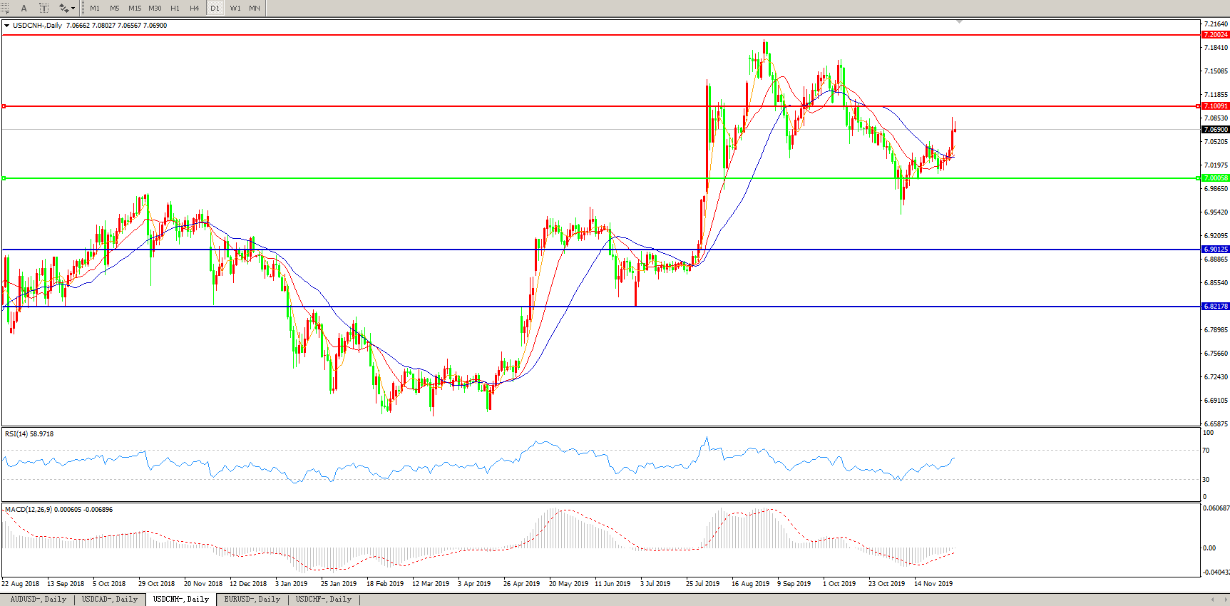 美元兑人民币USDCNH    日线图: