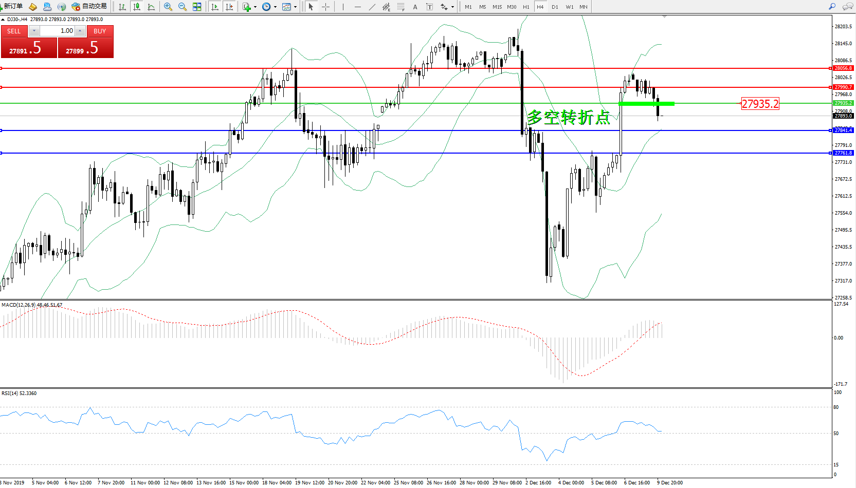 道琼斯指数12月9日(周一)收盘下跌105.50点,跌幅0.38%,报27909.60点。美国股市周一从接近纪录的水平回落,投资者准备迎接一周繁忙的政治和经济消息,其中包括贸易争端可能出现的转折点。市场处于有点观望的模式,所有人的目光都集中在12月15日关税问题将发生什么事情,这仍是可能影响交易的最大短期因素。投资者还关注中美贸易谈判和美墨加贸易协定。