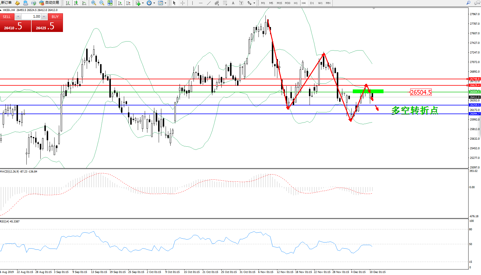 香港恒生指数12月10日(周二)收盘下跌58.11点,跌幅0.22%,报26436.62点;港股低开115点后,再扩大跌幅低见26355。低位有买盘支持,先收窄跌幅,再逐步回升,高见26527,本周有若干对市场会造成冲击的事件,在全球经济开始短暂向好的前提下,或许股票会有一小波上涨的行情,但短期来看,依旧需要耐心等待。而股市一旦出现趋势性调整,或许就是春天提前结束的信号。
