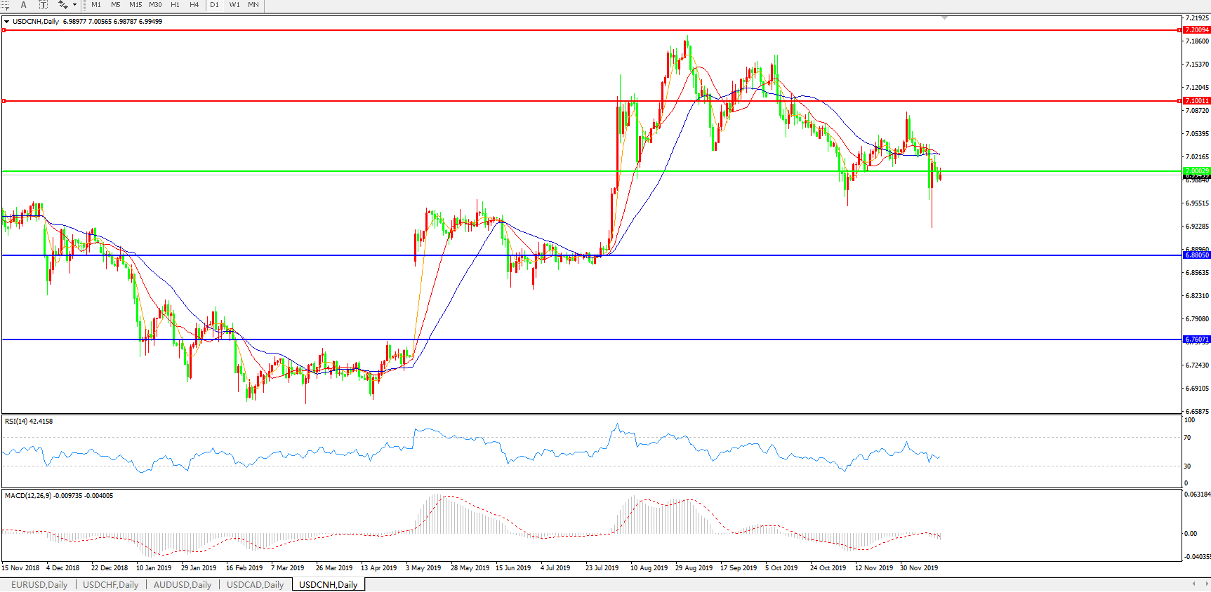 美元兑人民币USDCNH    日线图: