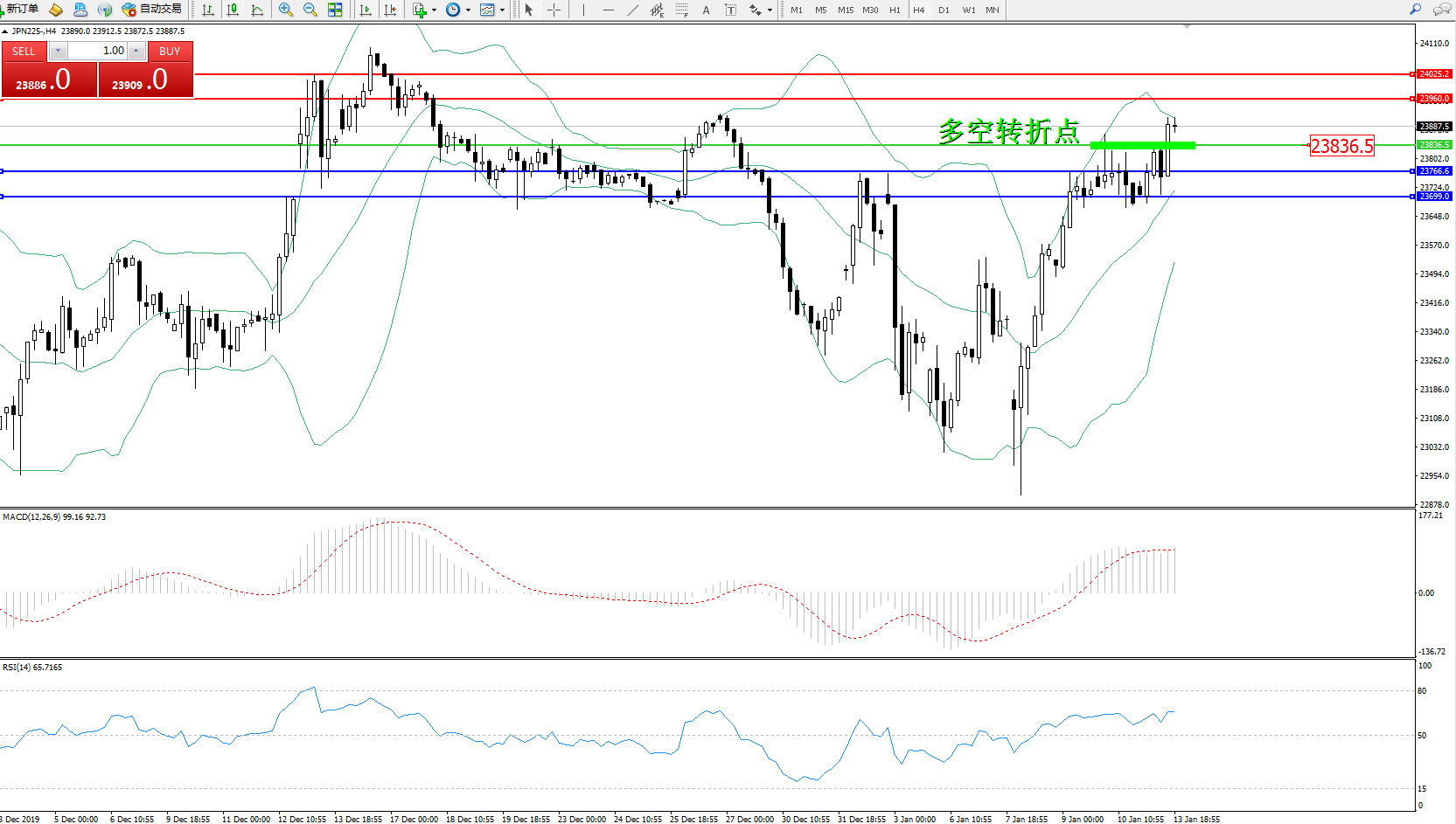 技术点评:低位多头上行态势良好,处于布林带指标中上轨区间不断震荡上移中,正试图破位布林带指标上轨附近压制节点,且布林带指标呈收口走势中,MACD指标处于多头区域高位整理平移中,RSI指标处于多头区域窄幅震荡平移;