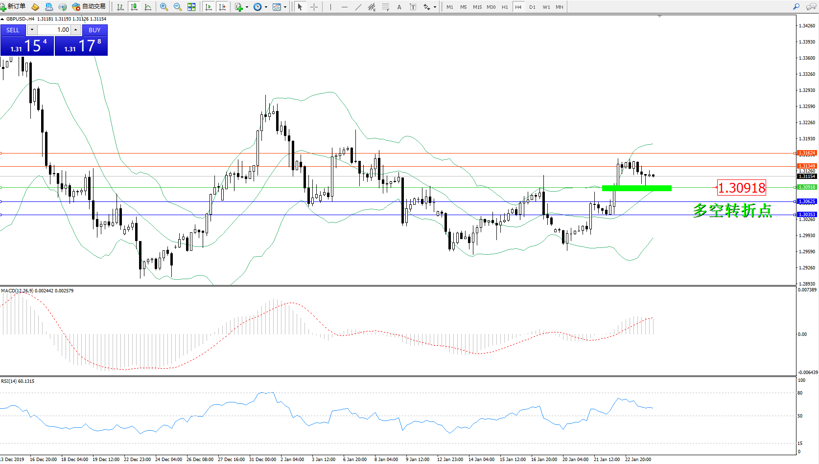 交易策略:1.30918下方看跌,目标1.30625、1.30353