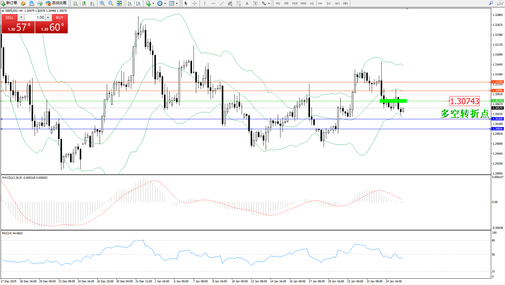 交易策略:1.30743下方看跌,目标1.30300、1.30056