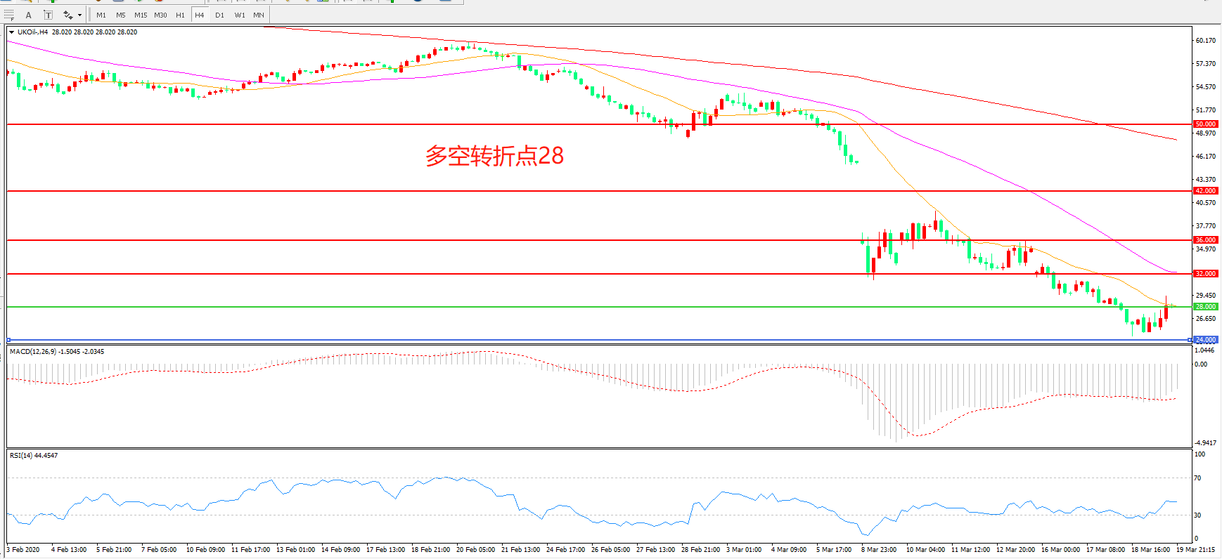 央行前所未有的救市政策提振了市场信心,布油一度暴涨,最终收报28.00美元/盎司,但沙特和俄罗斯之间的价格战让全球原油市场充斥着廉价石油供应,疫情发展及沙俄原油大战的结果仍是影响油价走势最重要的因素。