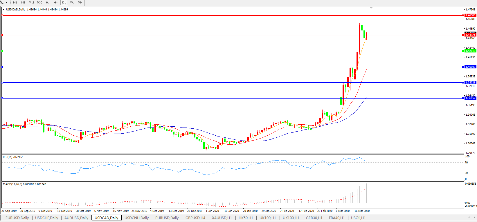 备选策略: 在1.4200之下,看跌,目标价位为1.4200、1.4000