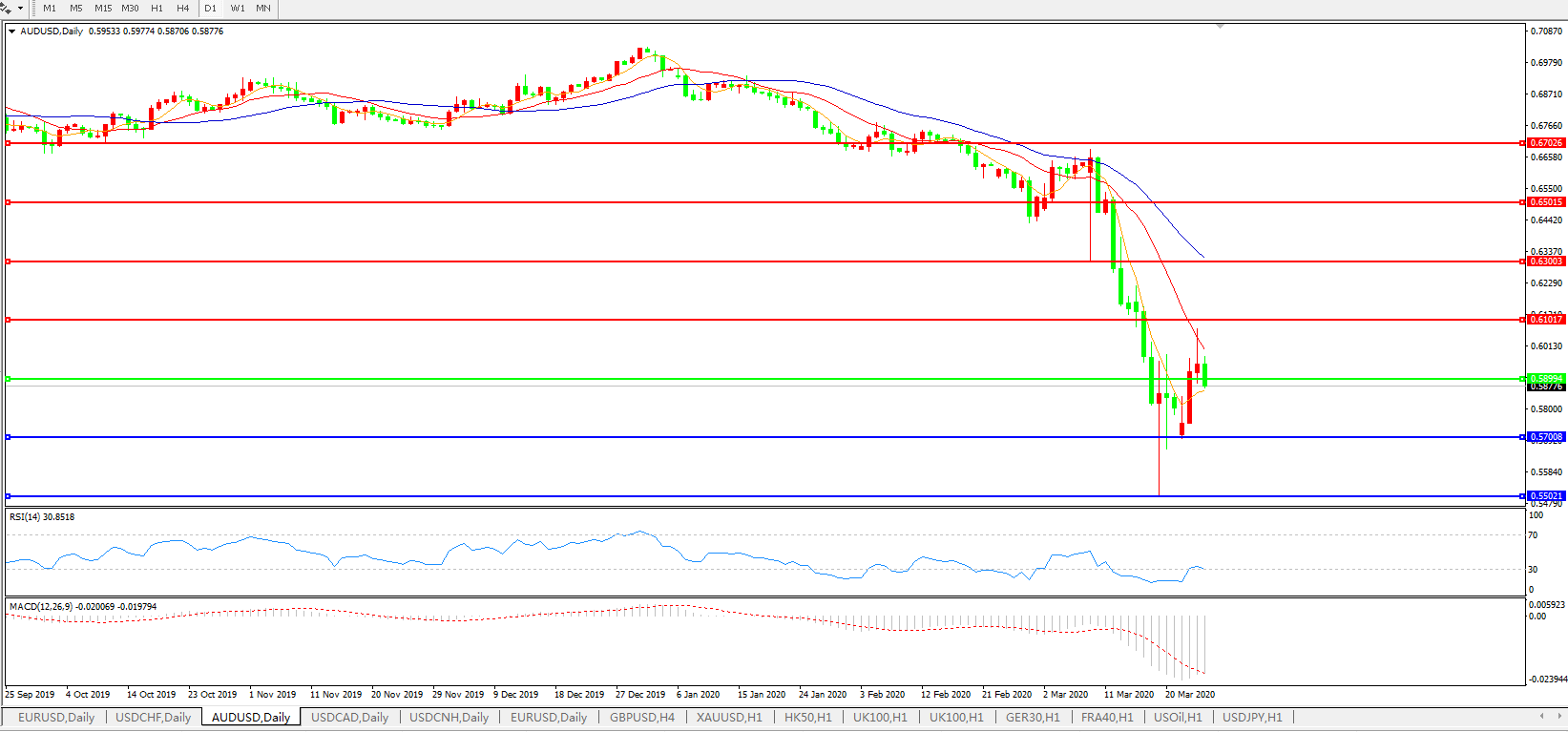 交易策略:0.5900上方看涨,目标0.6100、0.6300、0.6500