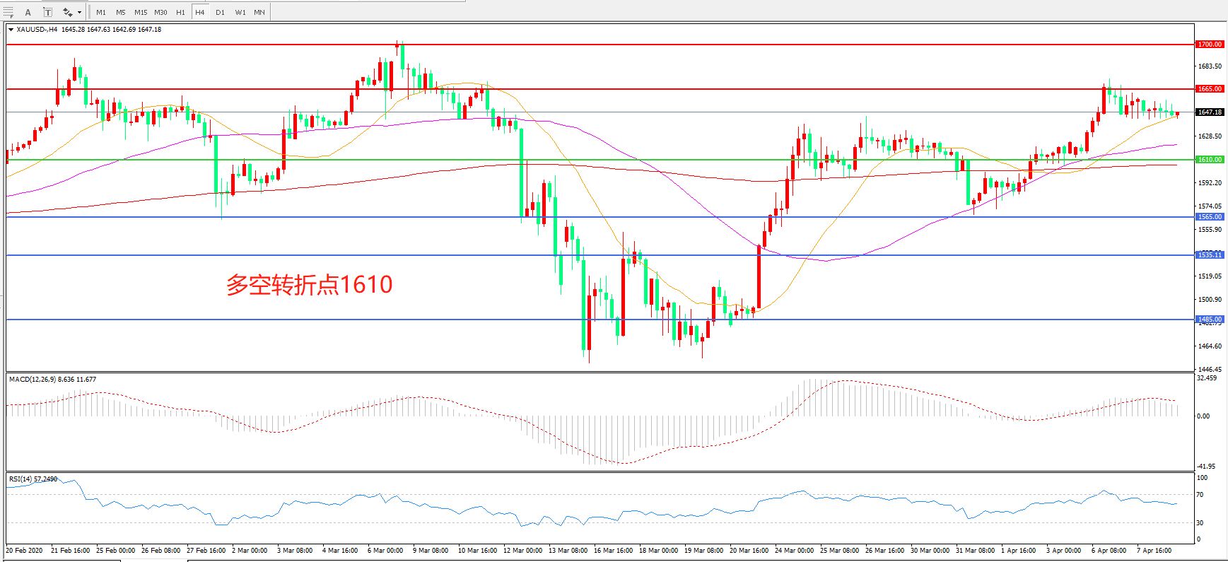 多空转折点:1610.00