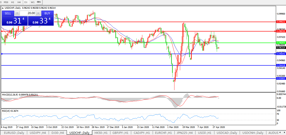 美元兑瑞郎USDCHF    日线图: