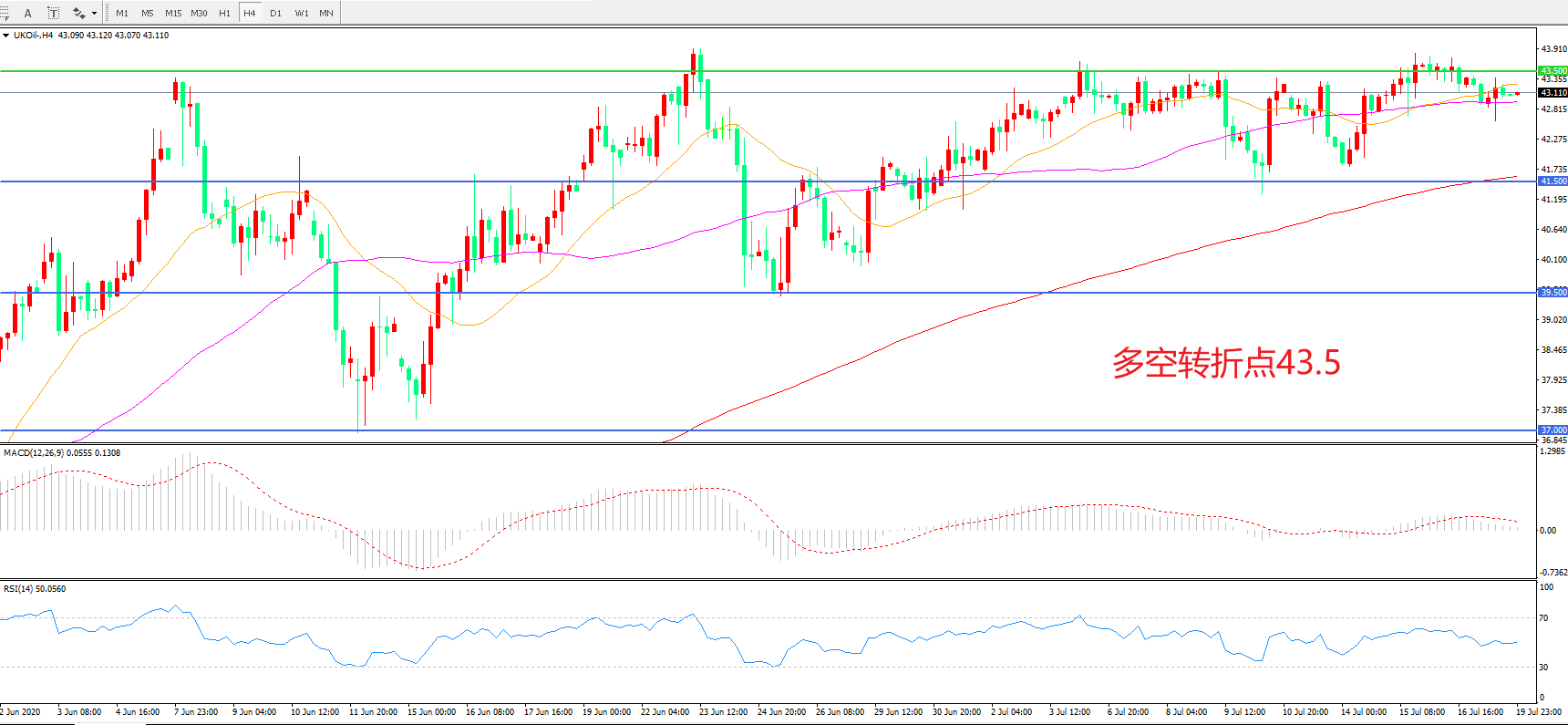 多空转折点:43.50