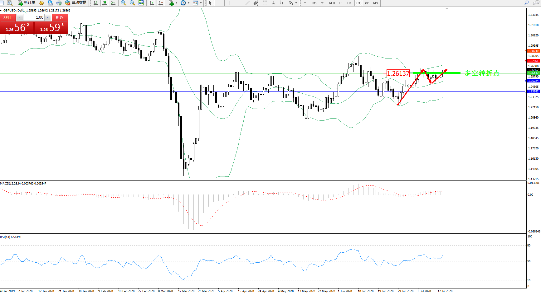 交易策略:1.26137上方看涨,目标1.27561、1.28730