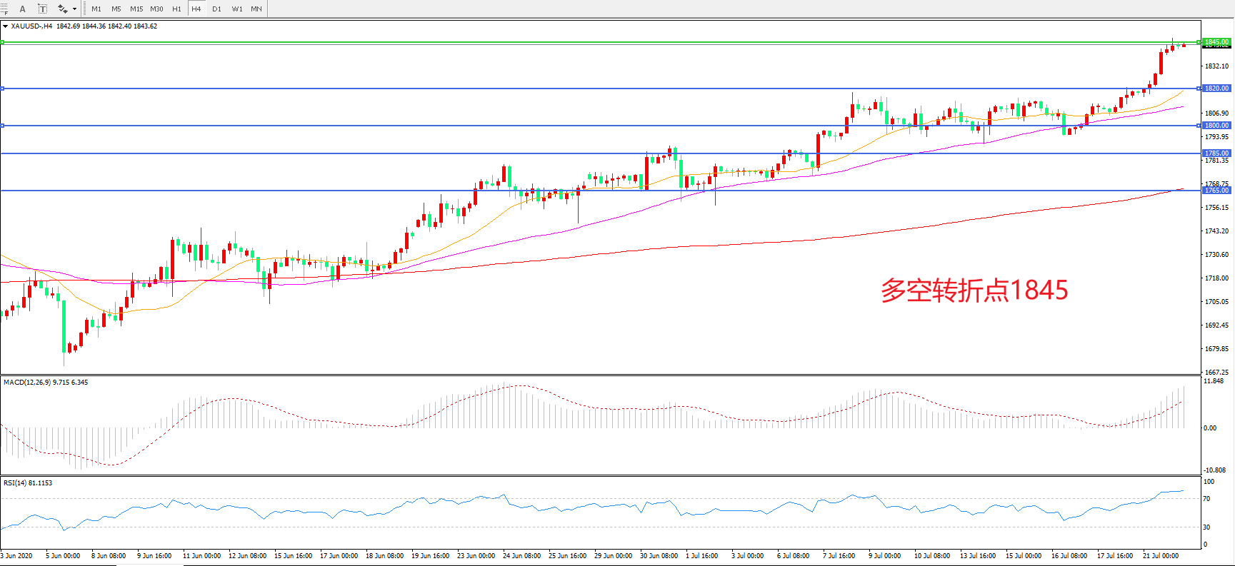 交易策略:在1845.00之上看涨,目标1880.00 1900.00