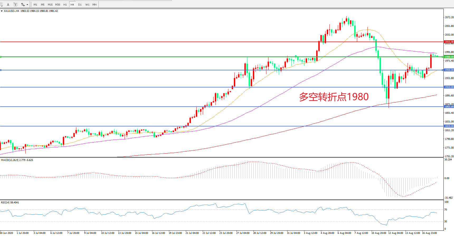 交易策略: 在1950.00之上看涨,目标2000.00   2015.00