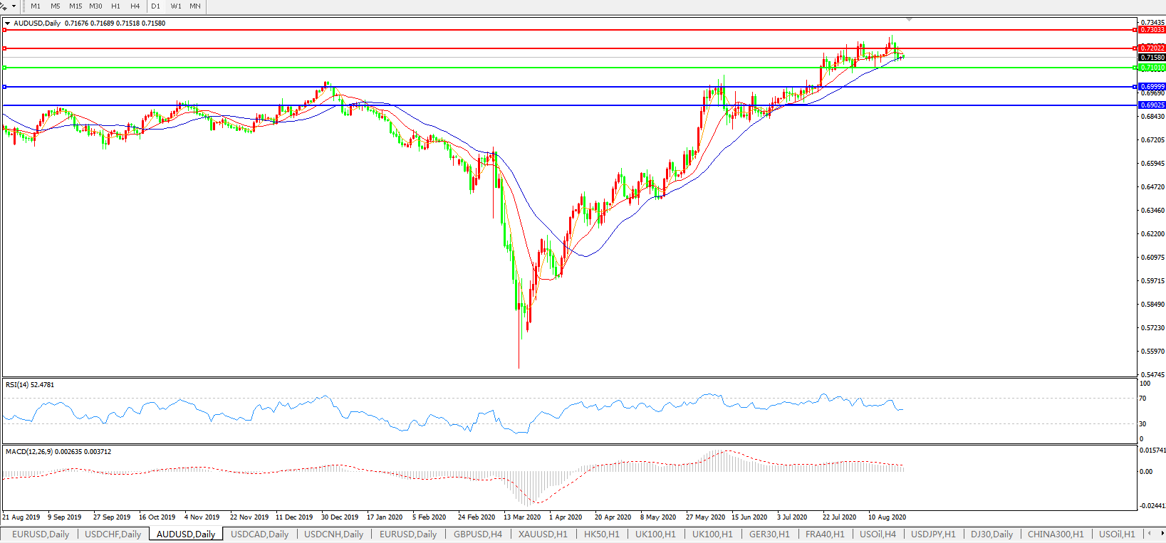 交易策略:0.7100上方看涨,目标0.7200、0.7300