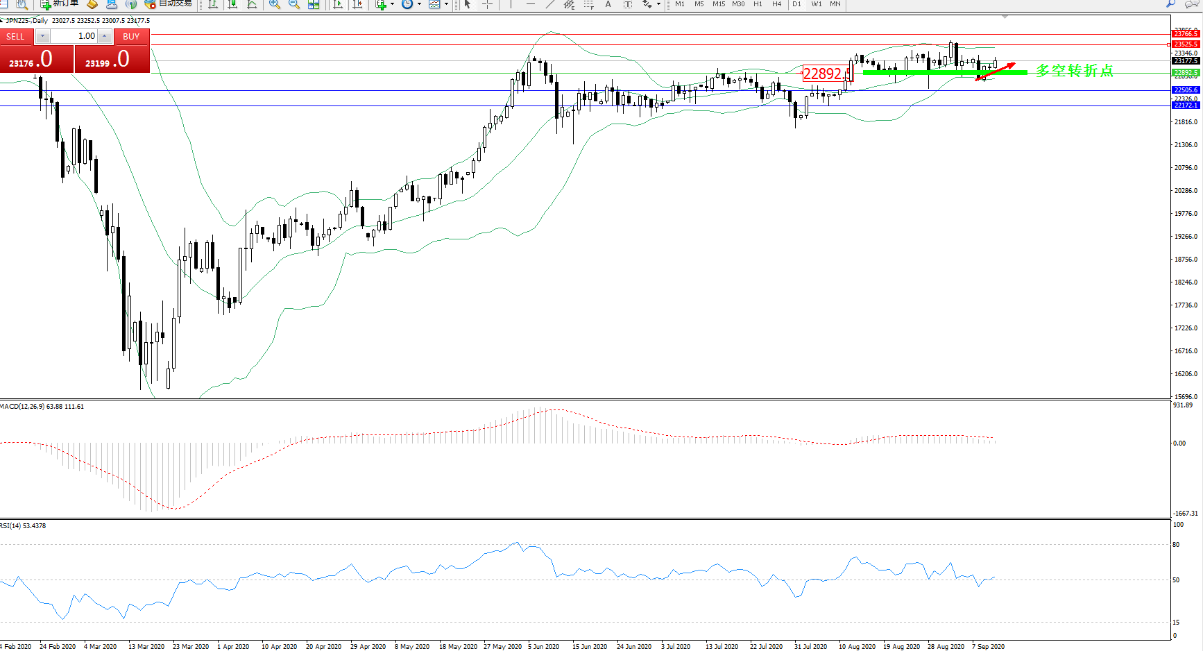 日经225指数9月11日(周五)收盘上涨141.53点,涨幅0.61%,报23377.00点。日本央行下周将以稳为主、保持政策不变,而菅义伟有可能接任安倍晋三的首相职务,接过帮助日本摆脱数十年来最严重经济衰退的重任。在接受彭博调查的44名经济学家中,95%预计下周四政策会议结束时央行将维持利率和资产购买规模不变。所有预测安倍晋三接任者的经济学家,给出的人选都是菅义伟。长期担任安倍晋三左右手的菅义伟已经表示,他将延续安倍经济学并保持与央行的紧密合作。95%的受访经济学家表示,领导层变动不会影响日本央行政策。鉴于金融市场相对稳定且企业能够获得信贷,预测日本央行下一步行动将是减少而非加码刺激的经济学家比例有所升高。大约48%的经济学家认为下一次政策调整将是紧缩,而7月时这一比例为40%。不过多数经济学家表示,他们预计最早要到明年3月才能看到政策有任何变化。