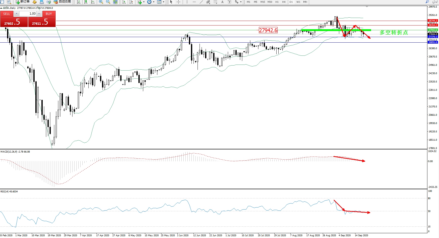 道琼斯指数9月18日(周五)收盘下跌244.60点,跌幅0.88%,报27657.42点。美股三大指数集体收跌,美国股市收于六周低点,科技股领跌。投资者试图从新的催化剂中寻找全球市场交易方向。周五为“四巫聚首”日,股指盘中在前收盘位上下震荡。投资者处于矛盾中,一方面是极高的不确定性,一方面又害怕踏空行情,担心市场继续走高。美元指数涨0.10%至93.00;一周累计下跌0.26%,美元几乎没有受到数据的影响,数据显示9月初美国消费者信心指数上升超过预期,创六个月新高。美联储博斯蒂克:乐见通胀超过2%,但将更多地看通胀发展轨迹而不是水平,在过去三年的时间里,美国的失业率将接近去年的极低水平,可以重新回到强劲的轨道上。在疫情之前,美联储比许多央行都更接近其2%的通胀目标,通胀数据传递出复杂的信息。
