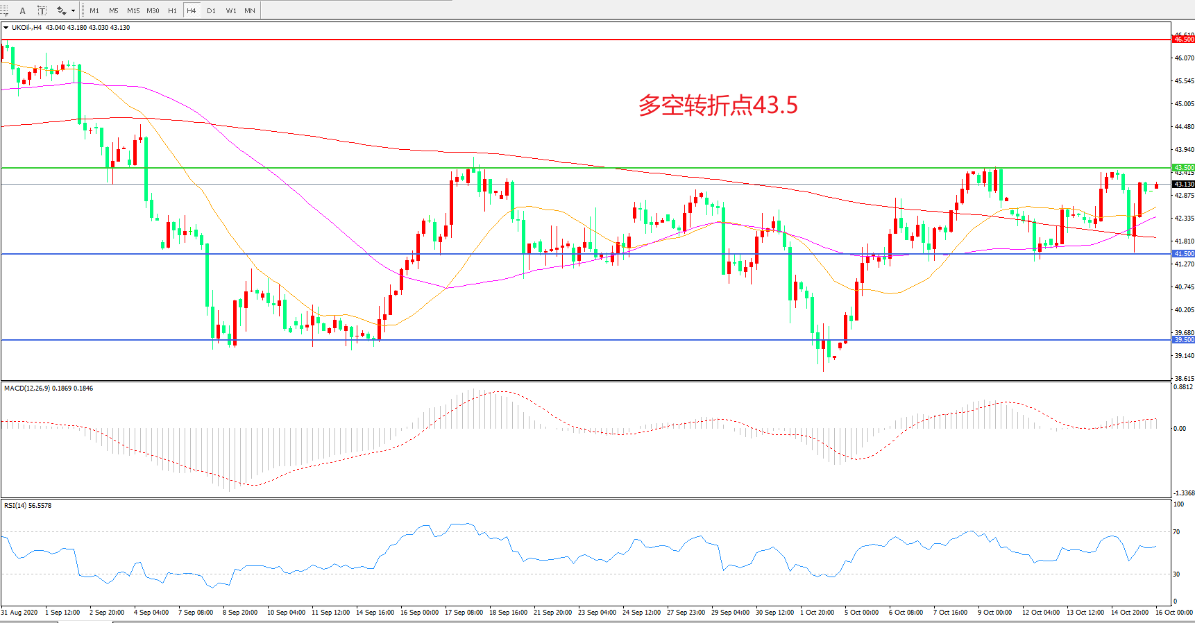 交易策略:  在43.50之上看涨,目标46.50      50.00
