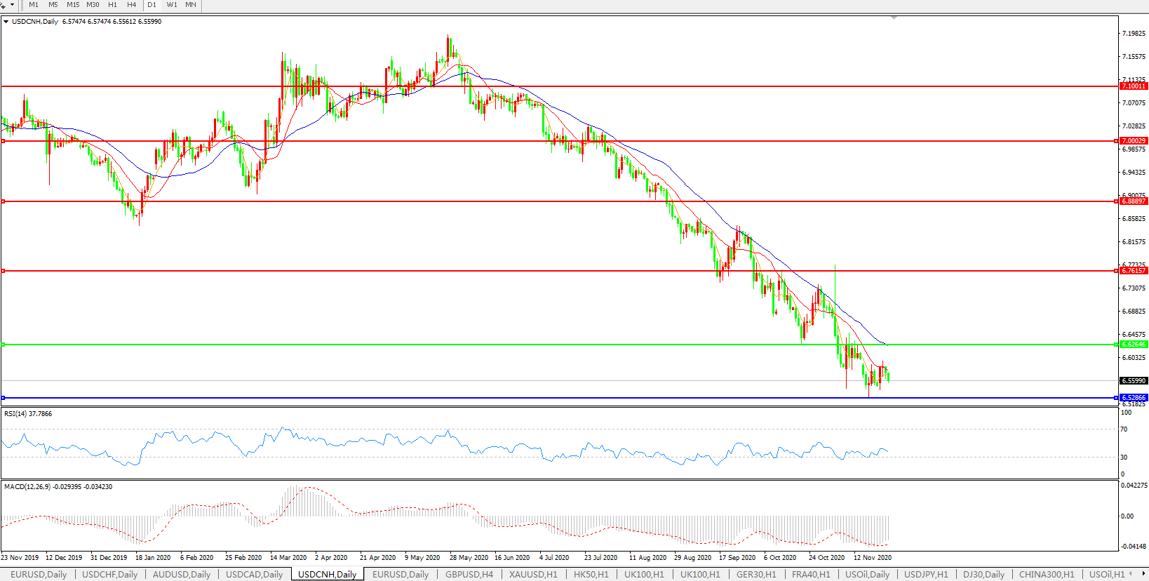 交易策略: 在6.6265之下,看跌,目标价位为6.5286,然后为6.3500。