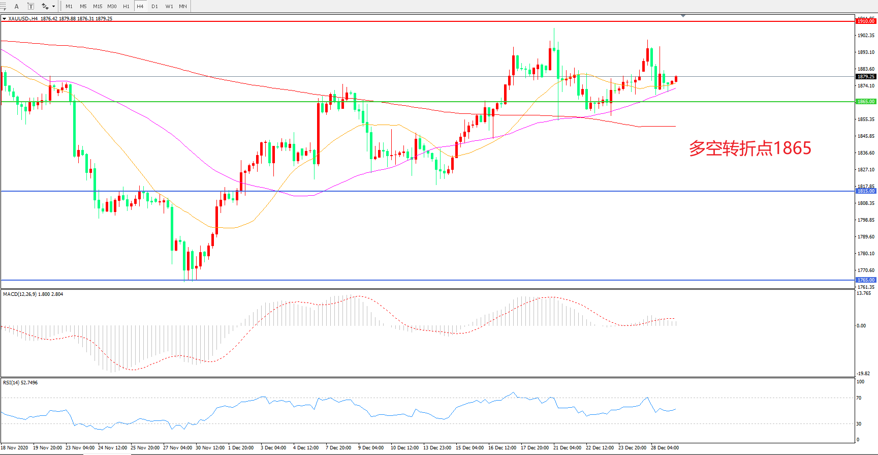 交易策略:在1865.00之上看涨,目标1910.00   1950.00