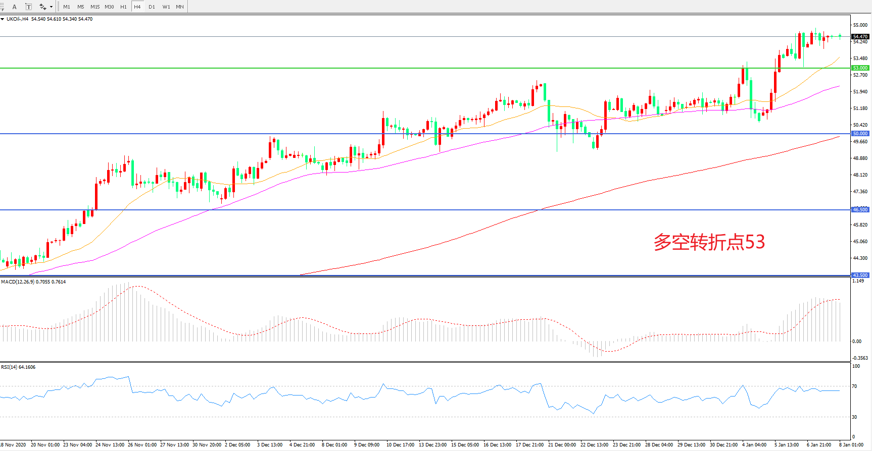 交易策略: 在53.00之上看涨,目标57.00 60.00