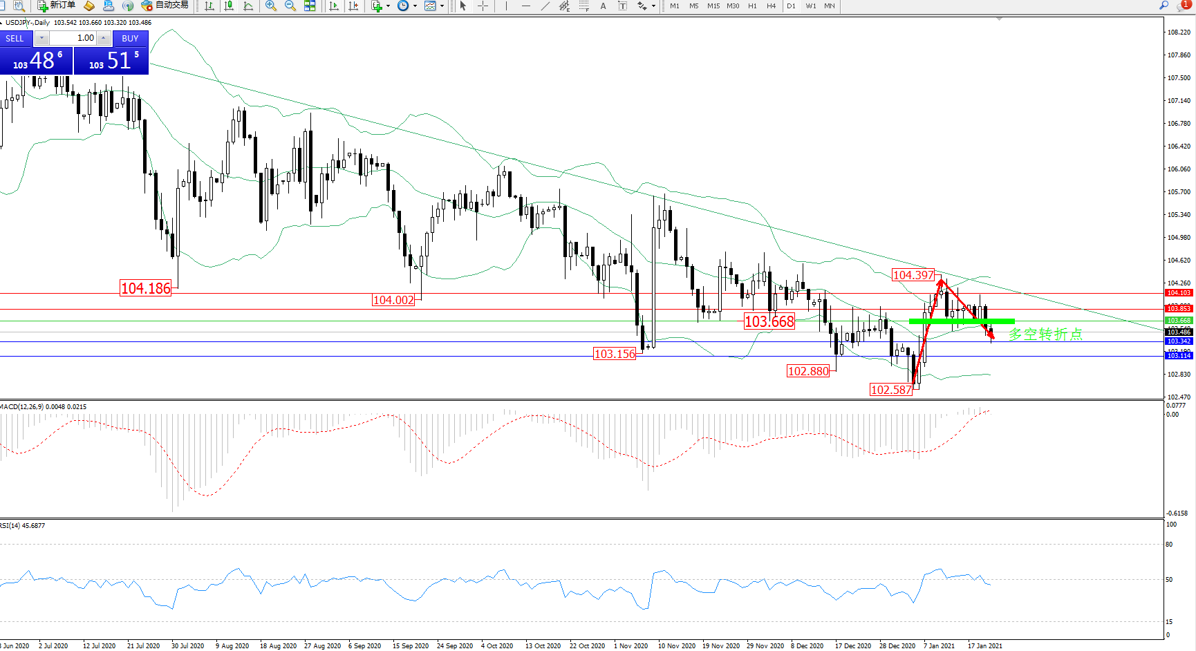 多空转折点:103.668