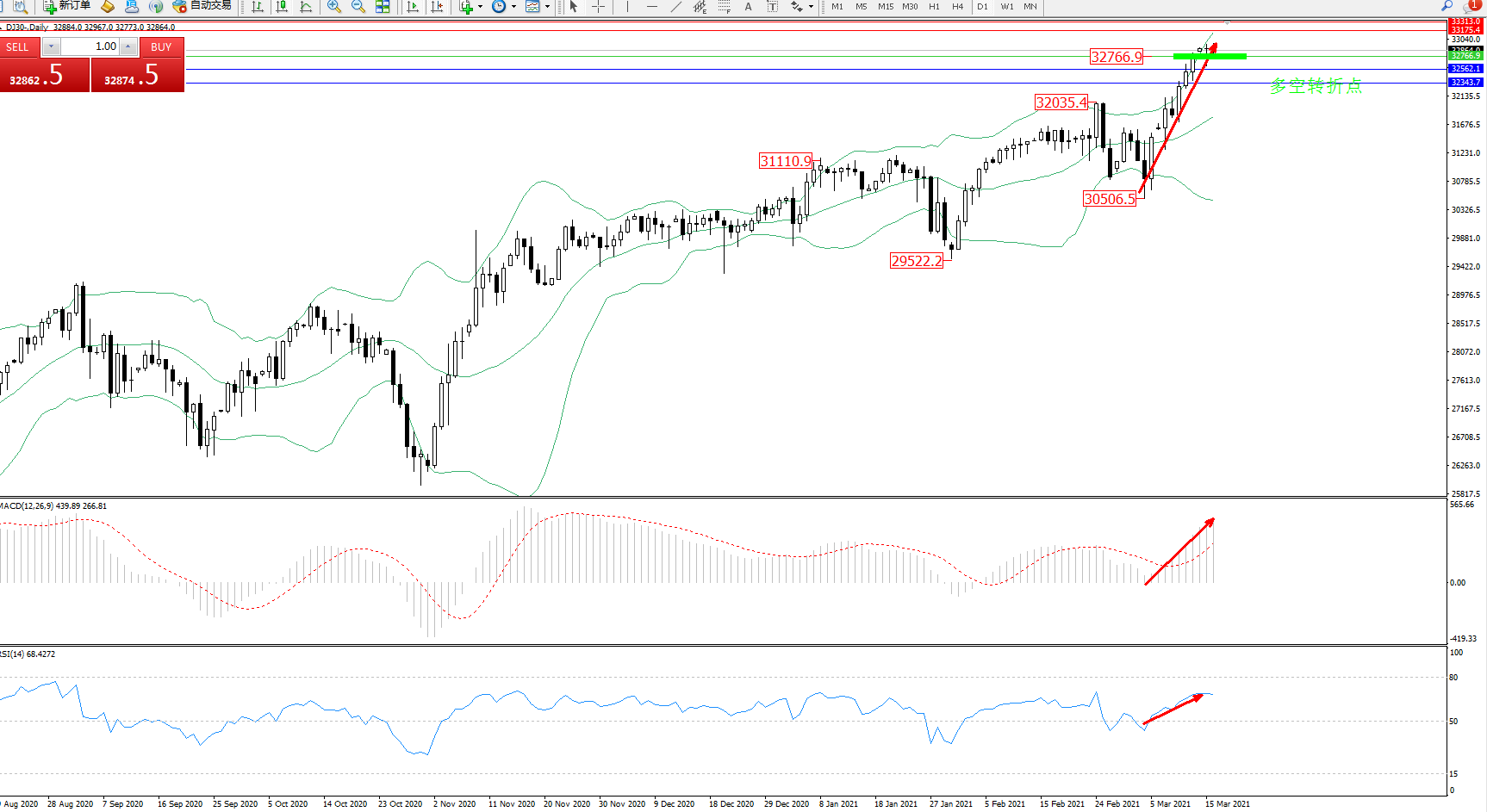 道琼斯指数3月16日(周二)收盘下跌127.77点,跌幅0.39%,报32825.69点;美股收盘,三大股指涨跌互现,美元走强带来压力,投资者等待从美联储两天会议中寻找政策暗示;全球经济即将迎来新一轮通胀浪潮,或迫使美联储较原计划提前采取加息行动;拜登政府“极端”的财政刺激措施将抬高消费物价,同时威胁到危机过后债市和股市的上涨;场对通货膨胀的消化实际上是一个重大的长期变化的开始,并非对正在发生的事情反应过度。经济状况和通货膨胀的实际变化速度将超过市场或美联储的预期;尽管市场对通货膨胀的预期已飙升至12年来最高水平,但美联储已表示对经济变热抱有耐心且预计未来两年内不会加息。周三美联储会议结束时料重申这一立场; 鉴于1.9万亿美元刺激计划以及防疫封锁的逐步解除,交易员们预测经济复苏将迫使美联储提前动手。欧洲美元合约显示,到2022年12月,美联储收紧政策的概率大约为75%。利于劳方的用工政策以及日益放缓的全球化意味着技术进步是唯一遏制通胀的力量。而财政和货币政策制定者可能会提供更多的资金支持直至极限来临。利用债券进行多元化投资的能力明显恶化,显然使用债券获得回报的能力下降了。