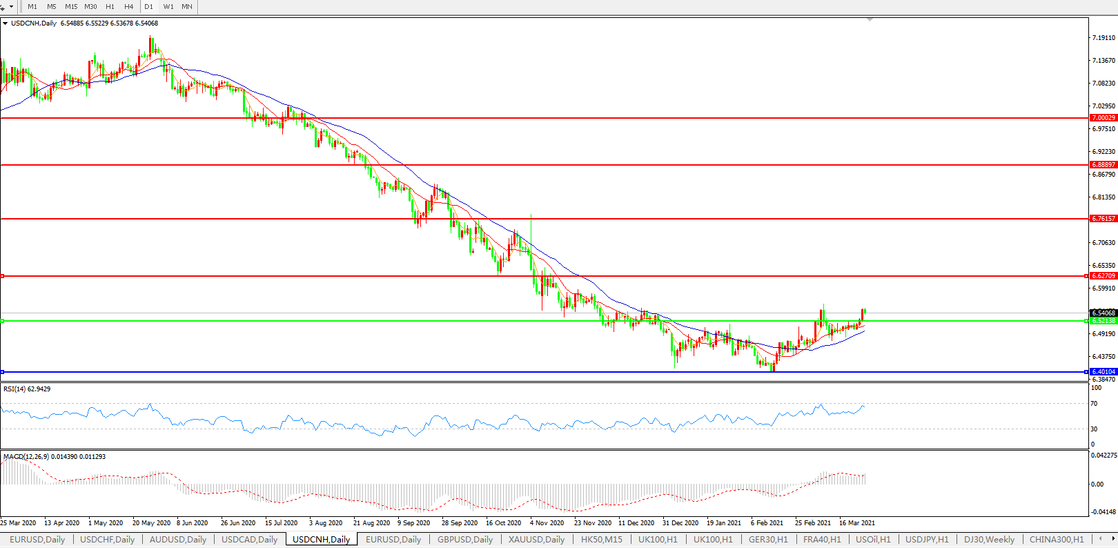 交易策略: 在6.5200之上,看涨,目标价位为6.6300,然后为6.7615。
