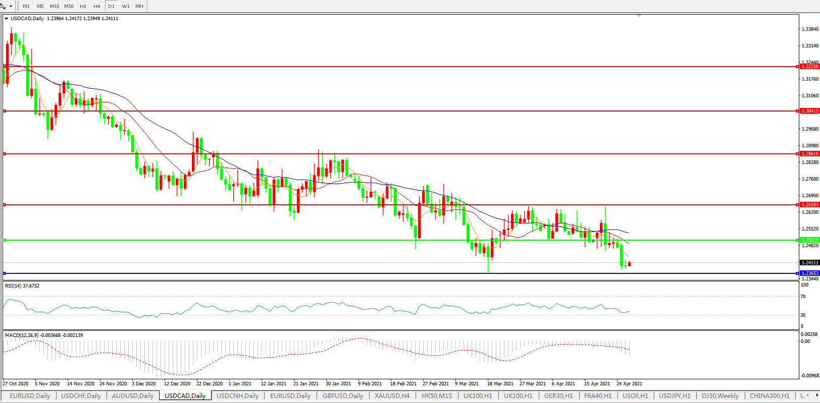 交易策略:在1.2500之下,看跌,目标价位为1.2365、1.2200