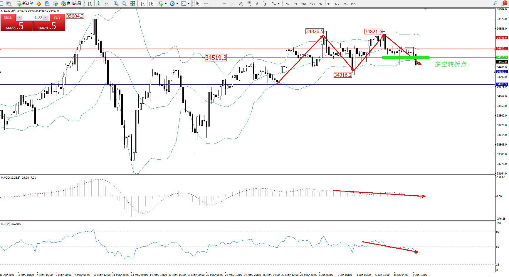道琼斯指数6月9日(周三)收盘下跌152.61点,跌幅0.44%,报34447.21点;美股收盘,道指初步收跌,一个由两党议员组成的小组预计会在本周提出新的基础设施建设提案,但其中不含拜登提议的任何加税计划。据一位参与谈判的参议员称,这几位参议员决定不以对企业或个人加税来支持基础设施项目。领导起草该提案的美国共和党参议员罗姆尼表示,“不会加税。这是我们的底线”。罗姆尼未具体说明该提案的资金来源,但表示不会增加赤字。