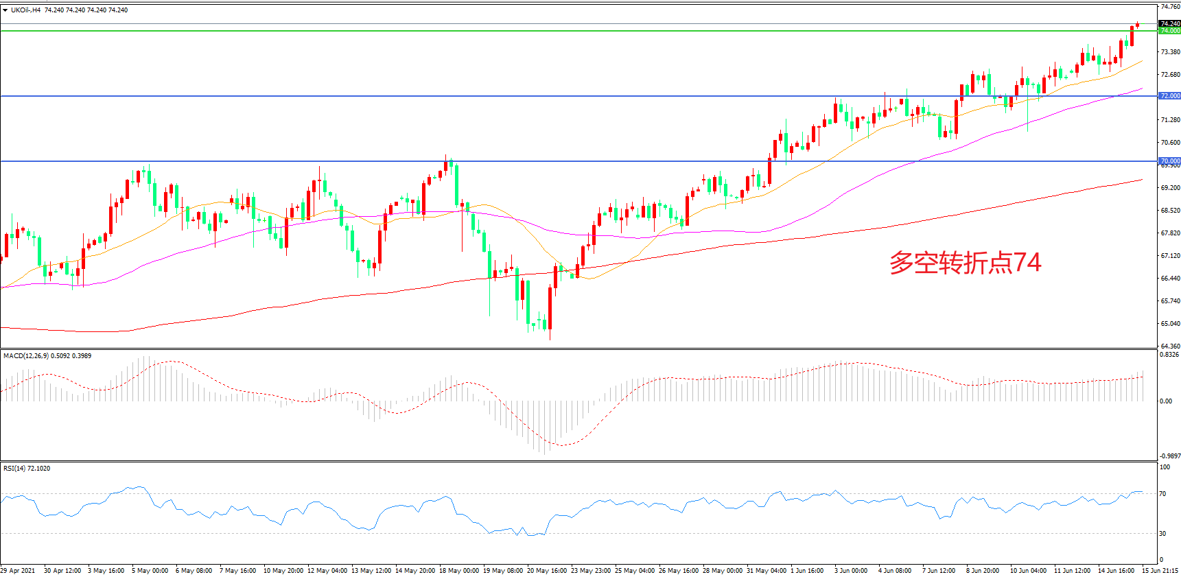 交易策略:在74.00之上看涨,目标77.00    80.00