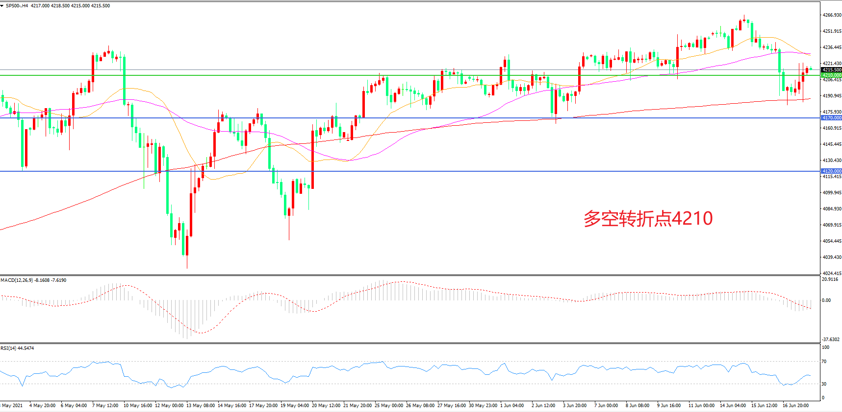 周四(6月17日),美联储主席鲍威尔在新闻发布会上首次承认,通货膨胀可能会比美联储预计的更加严重,美元指数进一步走高,美股投资者重回成长股怀抱,科技股一枝独秀,力挺标普500小幅回升,收报4214.50点,考虑到美联储也在会议之后安抚了市场,美股暂时不存在大跌基础。