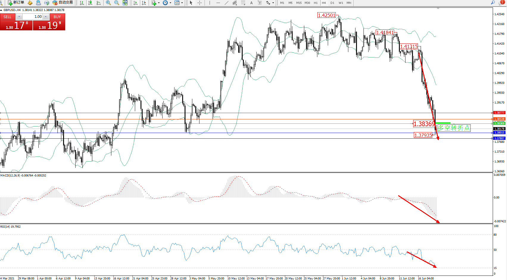 交易策略:1.38369下方看跌,目标1.38015、1.37807
