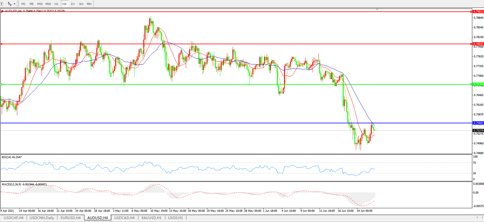 交易策略:0.7680下方看跌,目标0.7560、0.7400