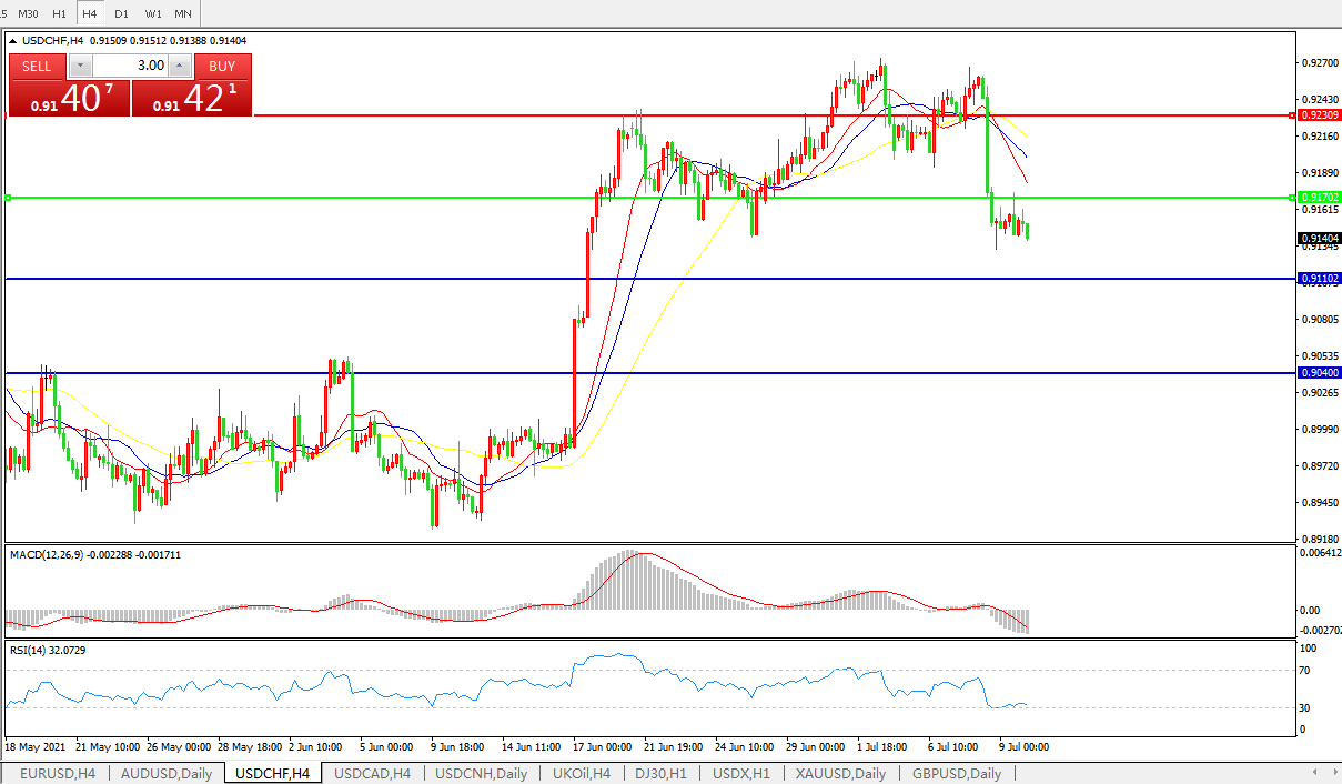 交易策略:0.9170下方看跌,目标0.9110、0.9040
