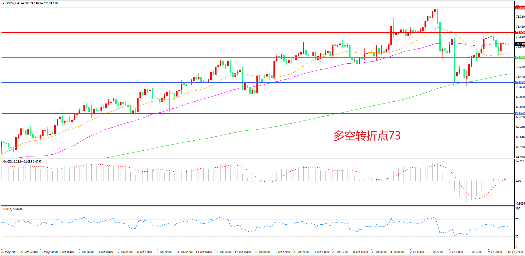 交易策略:在73.00之上看涨,目标75.00 77.00