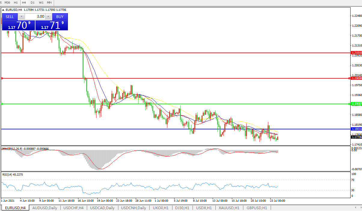 技术面简析:4小时图均线延续下行态势,汇价再度小幅走弱,MACD运行于0轴下但量能0轴下微缩量,RSI小幅走弱,预计短期汇价大概率将进一步下行。