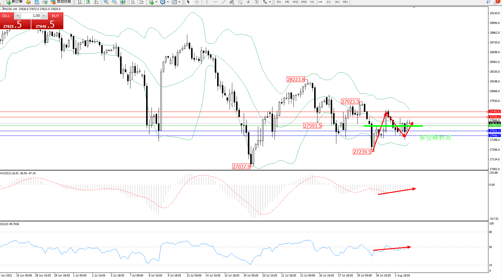 日经225指数8月3日(周二)收盘下跌162.02点,跌幅0.58%,报27619.00点。日本财务大臣麻生太郎:日本政府的实际财政状况在恶化。疫情措施增加了支出。密切关注疫情和经济状况。一旦疫苗接种得到推进,财政状况就会恢复正常。当前不考虑推出另一份追加预算方案。日本新冠疫苗接种量达8910万剂,29.8%的人口已完全接种。日本医学会会长:需要尽快为尽可能多的人全面接种疫苗。新冠病毒感染给医疗系统带来压力。