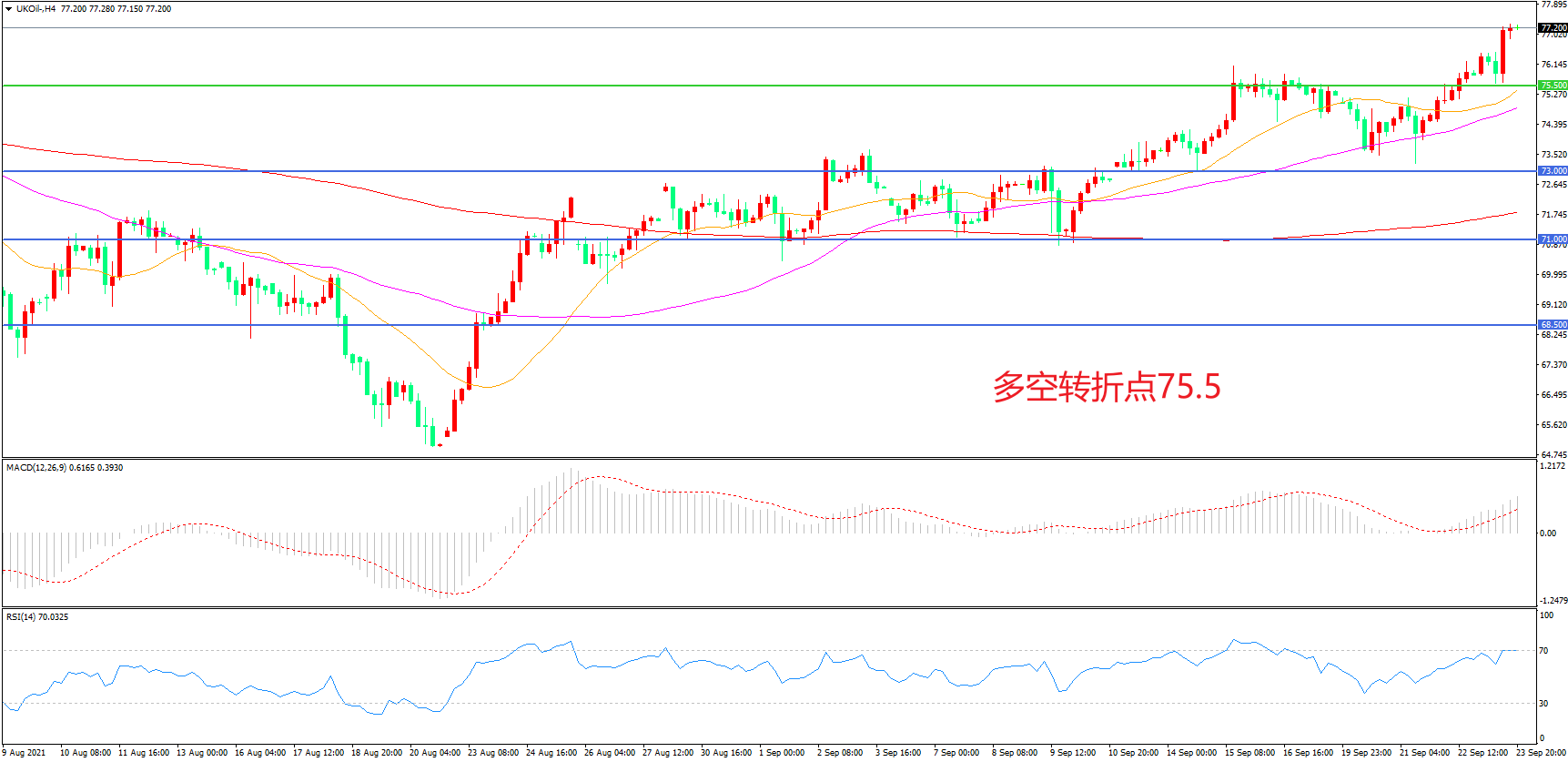 交易策略:在75.50之上看涨,目标78.00               80.00
