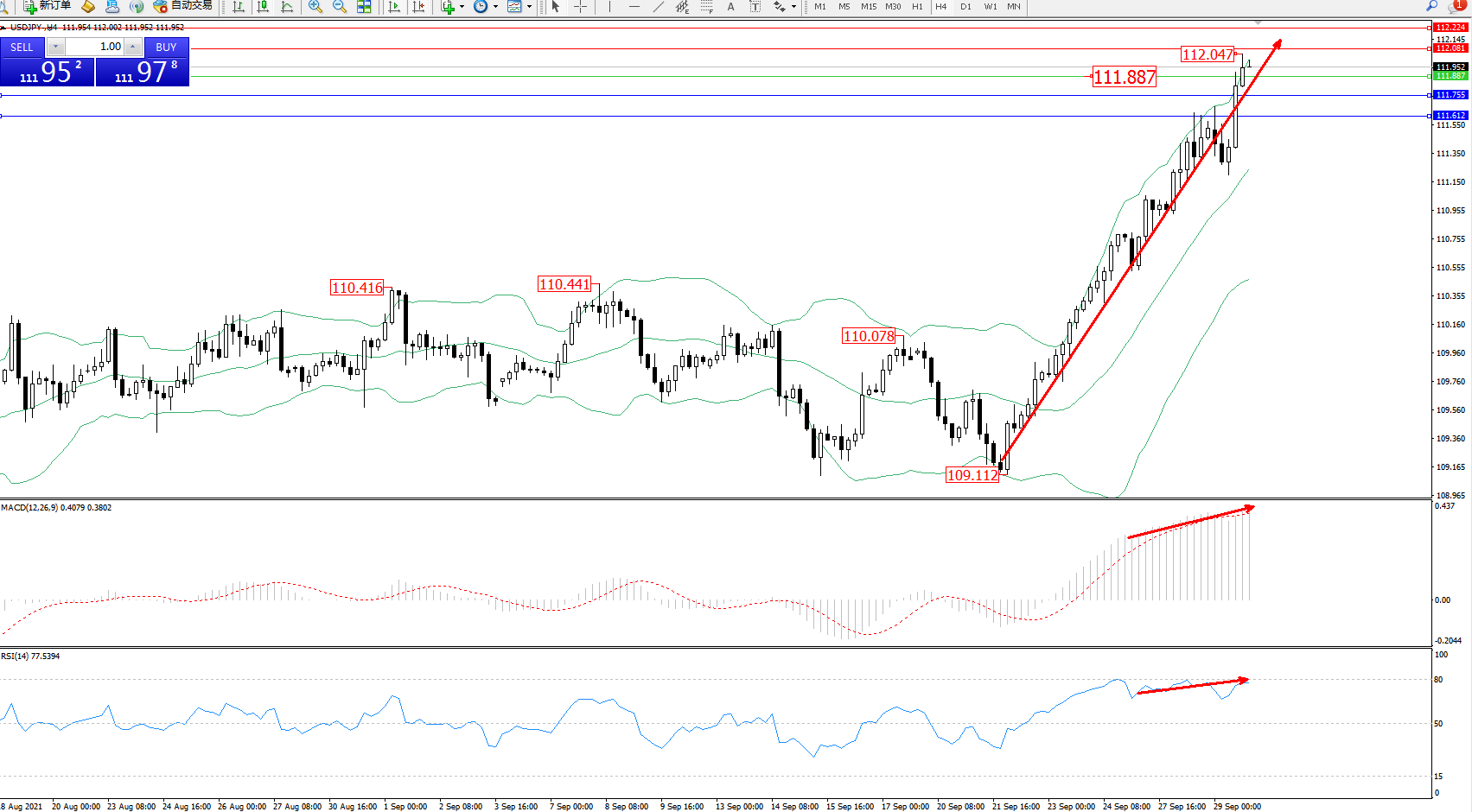 备选策略:111.887下方看跌,目标111.755、111.612