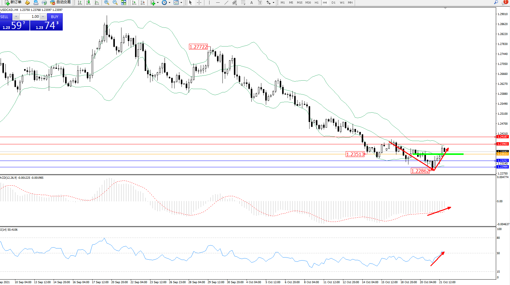 技术点评:空头动力延续布林带指标通道中下轨区间持续震荡下行,低位抵达1.22862位置后得到支撑反转开始向上回升,多头动力伺机入场,布林带指标呈下行趋势走势后开始反转上移,MACD指标处于空头区域低位震荡持续向上拉升中,RSI指标处于空头区域维持震荡持续震荡上扬至50均衡线附近整理中;