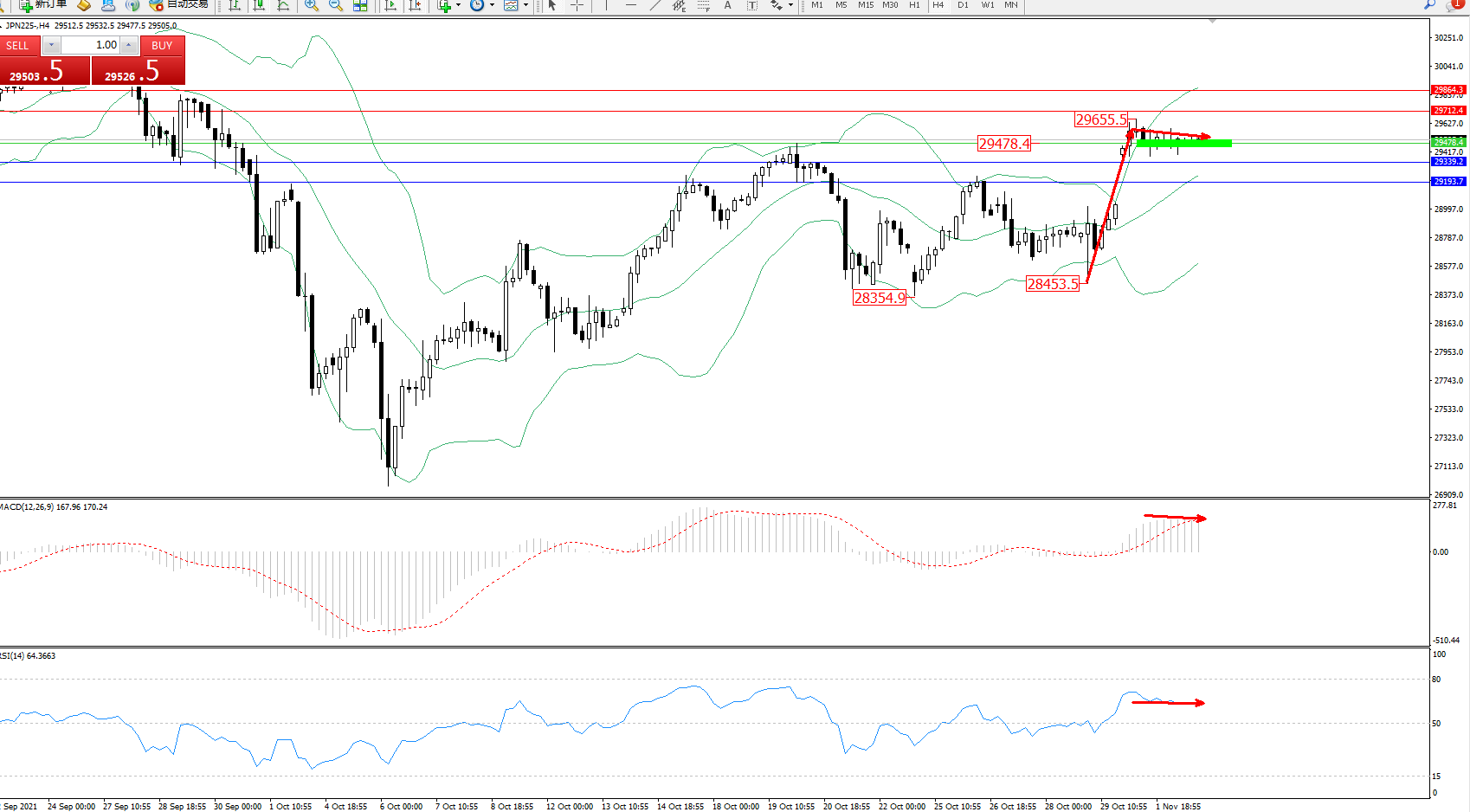 日经225指数11月2日(周二)收盘下跌149.58点,跌幅0.50%,报29497.50点。在最新的季度预测中,日本央行将截至2022年3月财年的消费者通胀预期从0.6%下调至0%。由于消费疲软以及疫情造成的供应中断对工厂产出的打击,IMF还大幅下调了今年日本的经济增长预期。这些预测突显出日本与其它经济体之间的政策差距。首相岸田文雄领导的自民党出人意料地保持众议院多数地位後,日股日经指数上涨了2.3%,达到一个月高点。民调显示,岸田文雄所属的自民党出乎外界预料,在周日的国会众议院选举中保持多数地位,巩固了他在一个分裂的政党中的地位,并使他能够加大刺激力度。