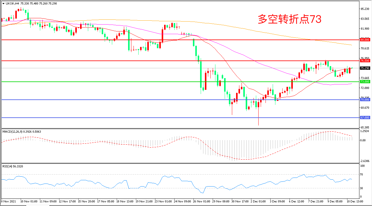 交易策略:在73.00之上看涨,目标76.50                80.00