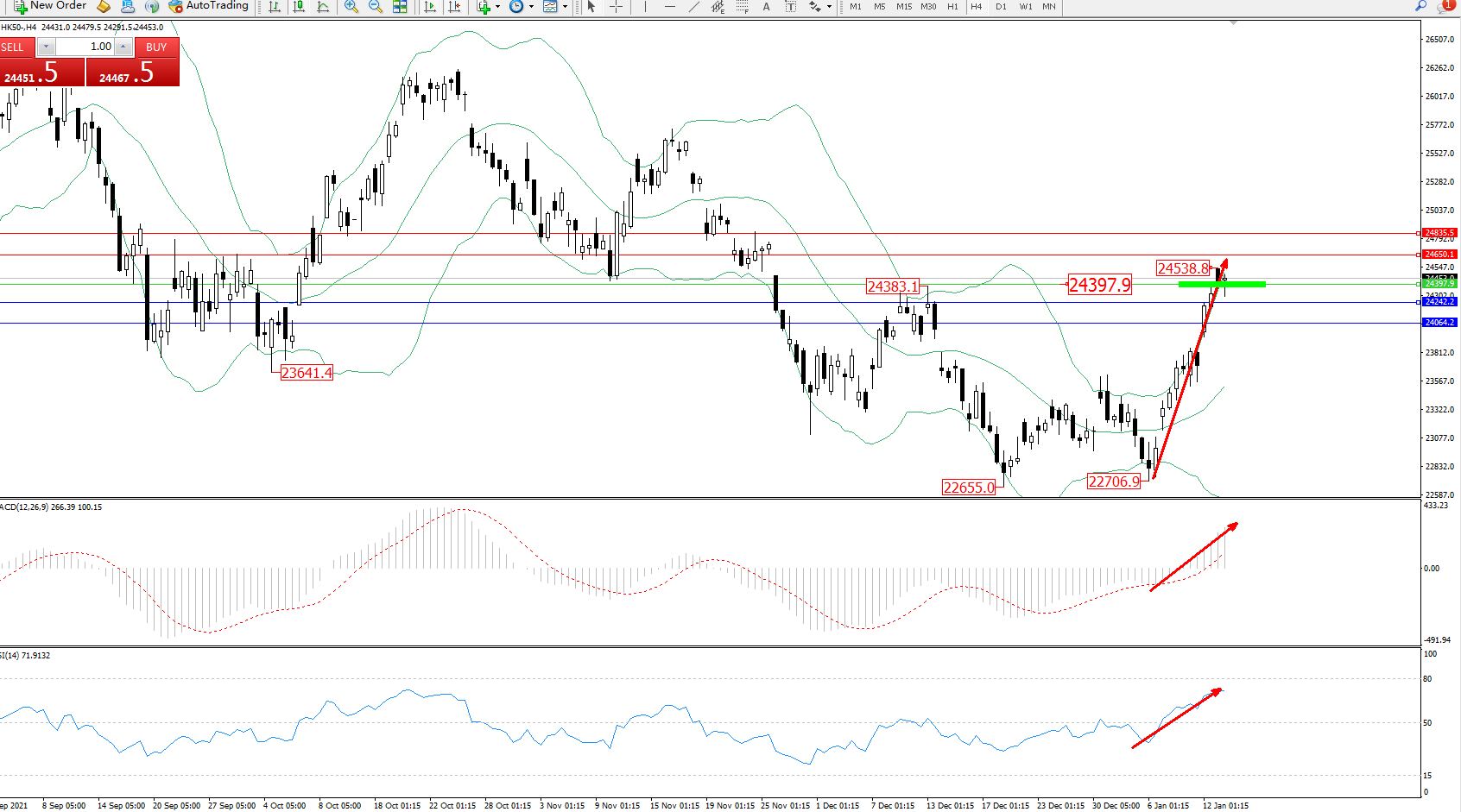 恒指HK50 ——4小时K线图显示: