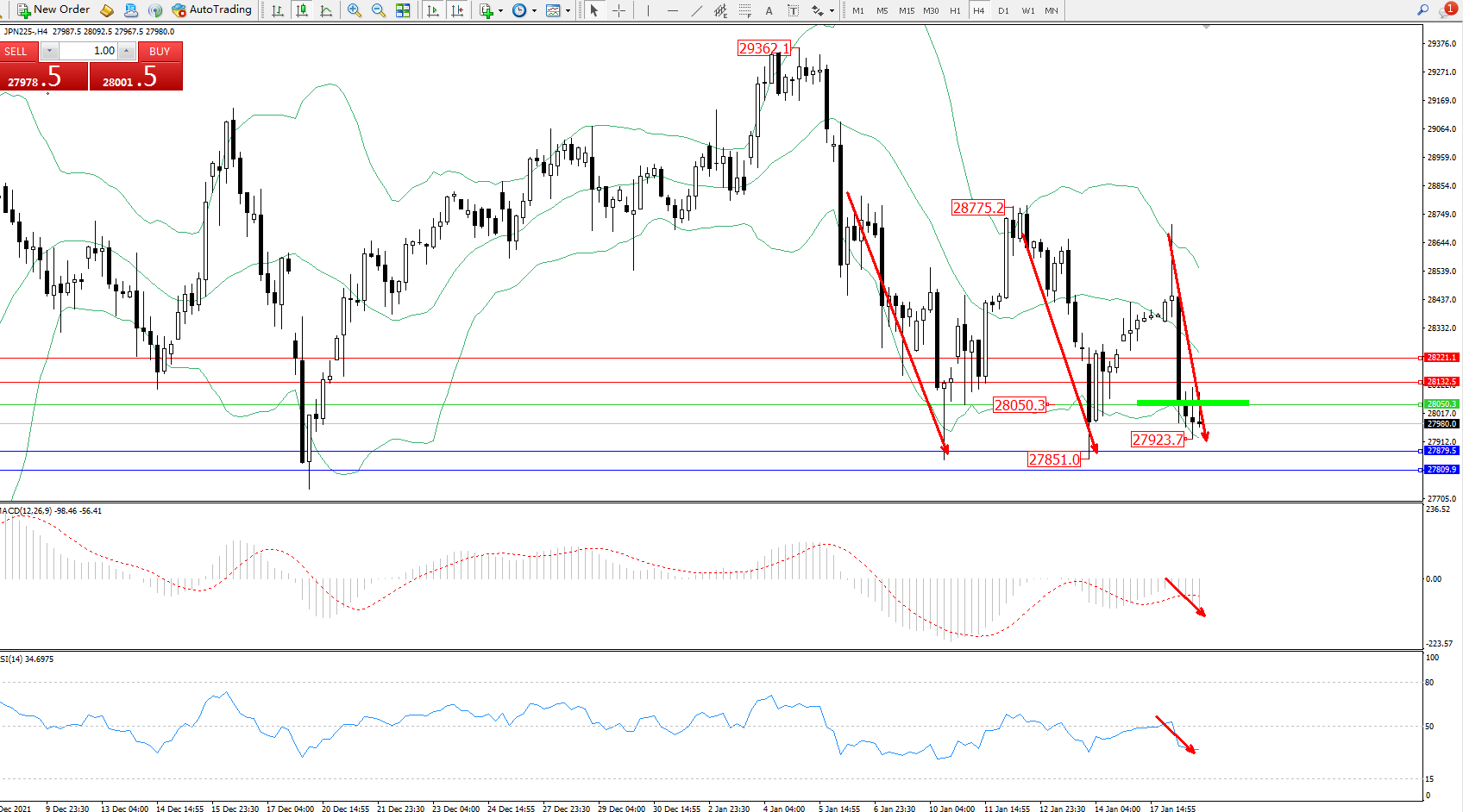 日经225指数1月18日(周二)收盘下跌83.02点,跌幅0.29%,报28250.50点。日本央行维持政策不变,自2014年以来首次调整了其对通胀风险的看法,此举表明,日本经济并非完全不受物价的影响,而此前物价压力促使了其他主要央行撤回大规模疫情刺激措施。不过,随着能源成本飙升,日本央行上调了2022财年的物价预期,并改变了对通胀风险的看法。此次调整也在人们的普遍预期之中,表明日本央行现在认为通胀有可能超过预期,而不仅仅是低于预期。