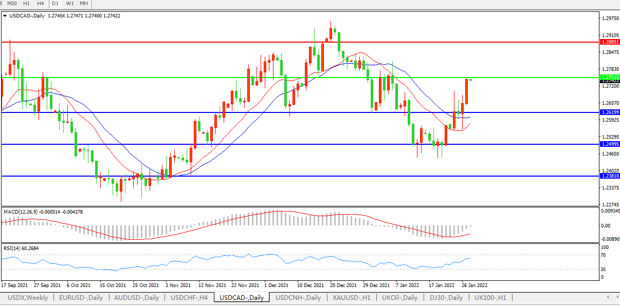 交易策略:在1.2750之下,看跌,目标价位为1.2620、1.2500