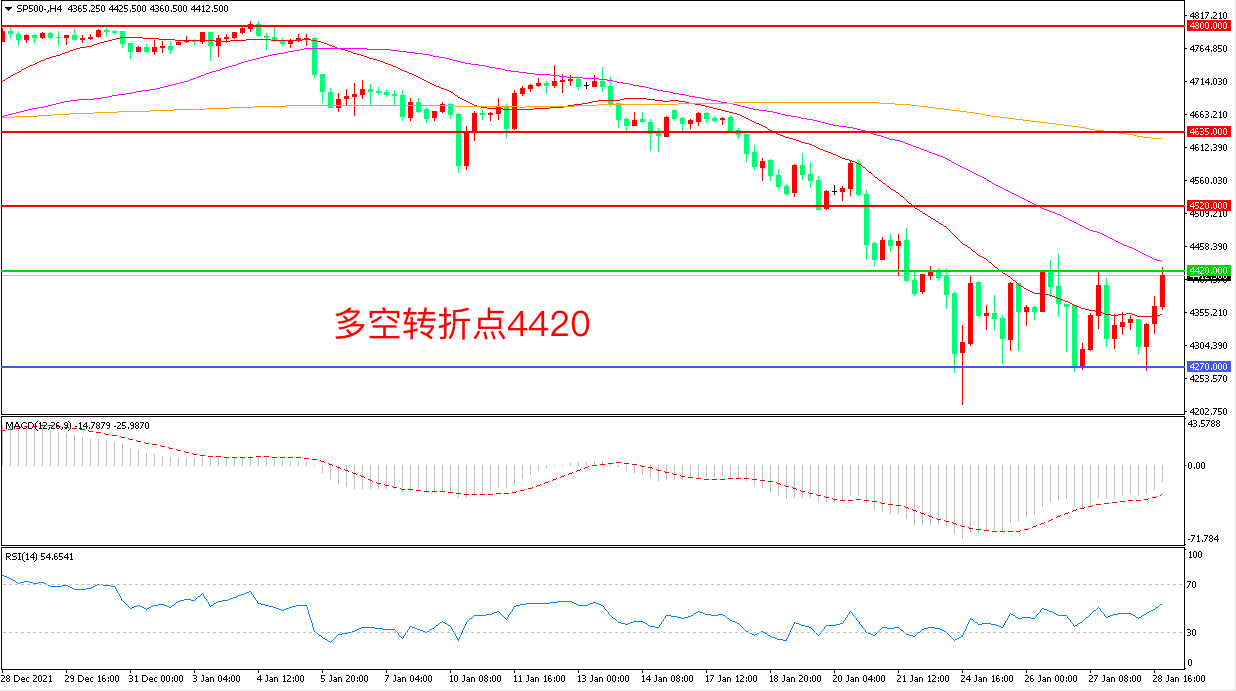 上周五(1月28日),扛住供应链挑战及奥密克戎疫情冲击录得创纪录单季营收的苹果高开高走,尾盘涨幅扩大到7%,科技股反弹带动标普500反弹,收报4412.50点。2022年以来,美国蓝筹股为主的标普500指数下跌7.6%,这是自2009年以来最糟糕的一月表现,美联储鹰派的加息预期降将会持续压制美股表现。
