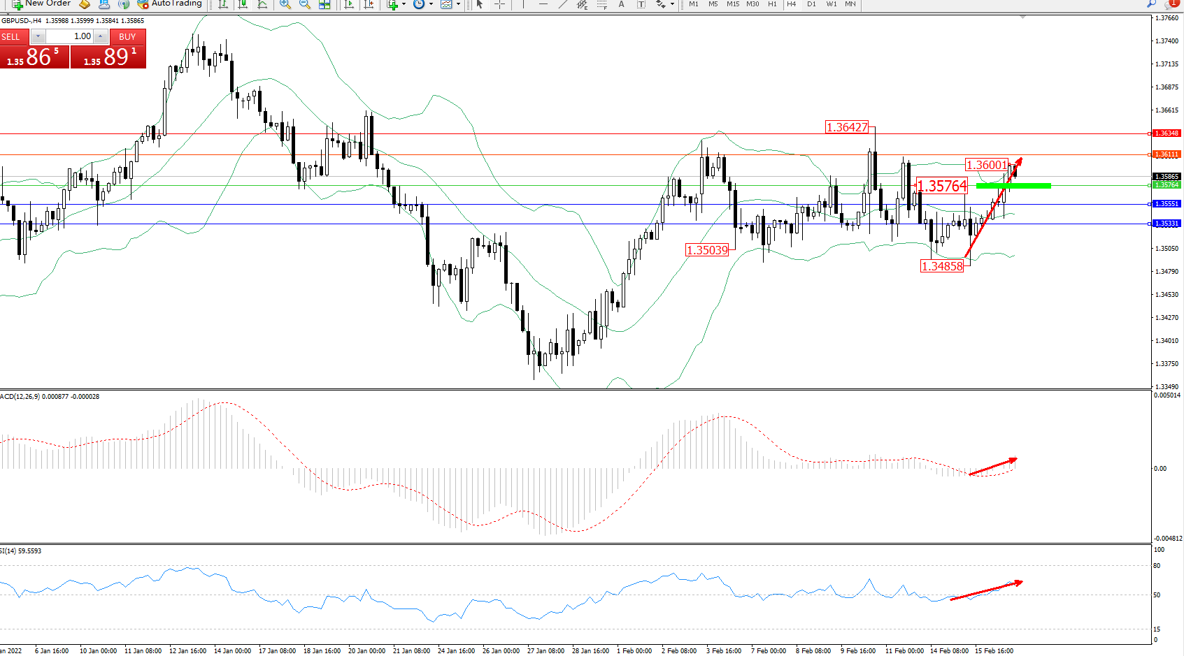 交易策略:1.35764上方看涨,目标1.36111、1.36348
