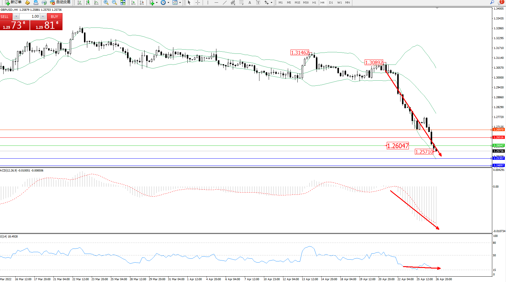 交易策略:1.26047下方看跌,目标1.25307、1.24897