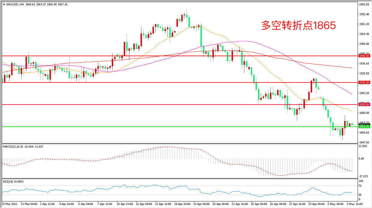 交易策略:在1865.00之下看跌,目标1840.00      1810.00