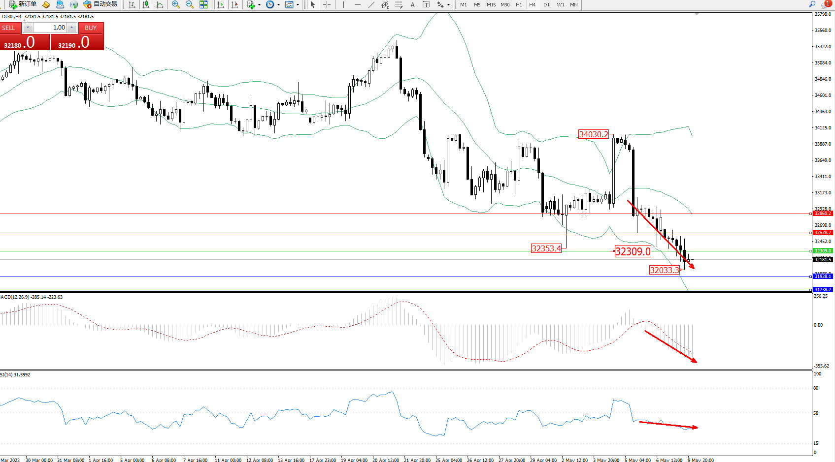 技术点评:空头动力延续布林带指标通道中下轨区间持续震荡下行,低位抵达32033附近节点后整理,空头动力有继续向下移动态势,布林带指标呈张口走势态势良好,MACD指标处于空头区域维持震荡不断向下移动中,RSI指标处于50均衡线下侧维持弱势整理徘徊中;